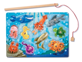 Fishing Magnetic Puzzle Game Children will love using the magnetic wand to lift and place magnetic pieces into the puzzle board. A creative way to encourage hand-eye and fine motor development. 10 pieces per puzzle. 9x12